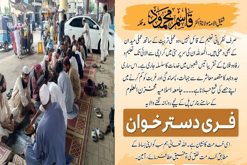 جامعہ اسلامیہ مخزن العلوم کے سامنے بنارس پل کے نیچے روزانہ لگنے والا فری دسترخوان اسی عزم و خدمت کا جیتا جاگتا نشان ہے، جہاں سینکڑوں ضرورت مند بلا امتیاز رنگ و نسل، مذہب و مسلک اپنی بھوک مٹا کر دُعائیں دیتے ہیں۔ یہ منظر محض روٹی کا نہیں بلکہ ہمدردی، اخوت اور ایثار کے جذبے کا آئینہ دار ہے۔